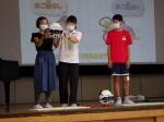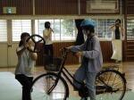 正しい自転車の乗り方をクイズや実験を通して学びました。止まれの標識では自転車も一時停止をすること,ヘルメットはあごひもまできちんととめないと頭を守ることができないことなど,実験を通して改めて学ぶことができました。
