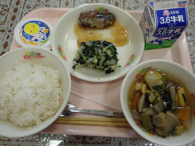 さんまのみぞれ煮、磯辺あえ、けんちん汁、月見ゼリー