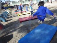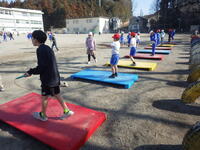休み時間に短縄跳びや長縄跳びの練習をよくやっています。冬休みに配られた「縄跳びカード」をもとに体育の授業でも盛んに短縄跳びを行っています。そんな中,昨日,機動班の方々に新たに5台ジャンプ台を作っていただきました。一晩ペンキを乾かして今日お披露目です。これで9台になりました。いろいろな技にチャレンジしてほしいです。