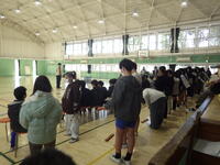 3年生の総合的な学習で「導犬ふれあい学習」を行いました。東日本盲導犬協会から2歳のイズモ君が来てくれました。とてもお利口で大勢の3年生の前でもずっとおとなしく,訓練士の方の指示をよく聞いて,的確に動いていました。視覚障害の種類や盲導犬育成に関する説明をしていただきました。またアイマスク体験もしました。大変勉強になりました。