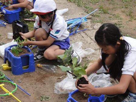 委員会活動が行われています。職員室前の廊下では,飼育・園芸委員会の児童が教室に飾るために,アジサイの花を花瓶に生けています。もうすぐフラワーロードさわやか集会です。