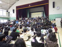 3時間目に,お世話になった6年生に感謝する「ありがとう集会」が行われました。この日のために5年生を中心に準備してきました。4年生が担当した花のアーチで6年生が入場し,5年生の進行で会が進められました。6年生へのアンケートクイズでは,好きな給食1位は「揚げパン」楽しかった行事1位は「修学旅行」等,また1~5年生が6年生に一番お世話になったことは「登校班」でした。在校生からのプレゼントは縦割り班メンバーで作ったメッセージカードと卒業式で使う祝花。6年生からは合奏とカレンダーがプレゼントされました。心温まる素晴らしい会でした。