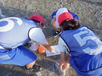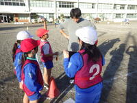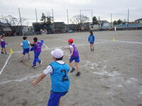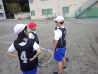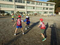 4年生の体育の授業で「タッチラグビー」をやっていました。簡易化されたルールでゴール型のゲームです。攻めと守りに分かれ,攻めチームのボールをもっている人がゴールラインを切れば点数になります。チームごとに作戦を立てることが勝利につながります。笑顔がはじけ,やる気満々の授業でした。