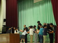 明日の卒業式を控え,今日は6年生のために「卒業祝いコンサート」が行われました。今年も宇都宮短期大学音楽科教授 新井啓泰先生,准教授 鎌田亮子先生,2名の卒業生の計4名で演奏していただきました。「ありがとうの花」から始まり,子供たちのよく知っている曲など素晴らしい演奏でした。最後に明日の卒業式で歌う「旅立ちの日に」を6年生も一緒に歌いました。本当にありがとうございました。