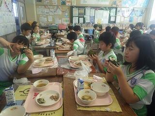 おかずの生姜焼きを入れて肉おにぎりにしたり、大きいサイズや小さいサイズなど自分好みの大きさにしたりと、楽しくおいしくいただきました。