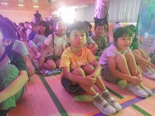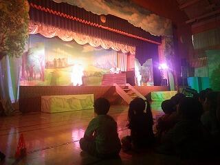 子供たちが入場すると、いつもの体育館がミュージカル劇場になっていました。