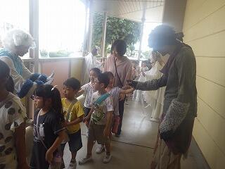 子供たちが過度に怖がらないよう、事前に身元を明かしておいてもらいました。