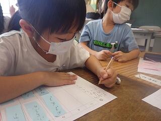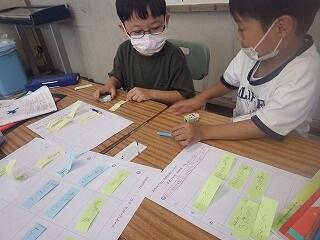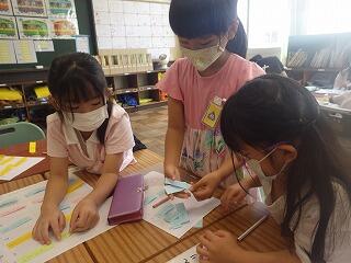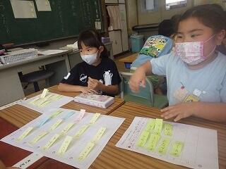 友達と知恵を出し合って、「ひ・ふ・み・よ・い」のつく言葉を集めていました。