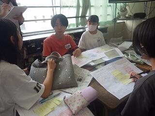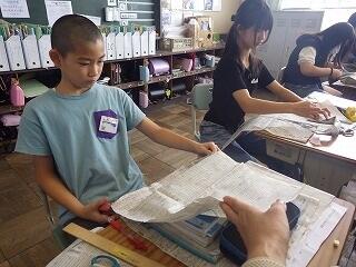 オリジナルバッグを作るために、新聞紙でシミュレーションをしていました。