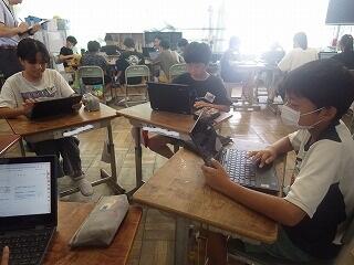 こちらも、お手本の動画を見ながら元気に練習していました。