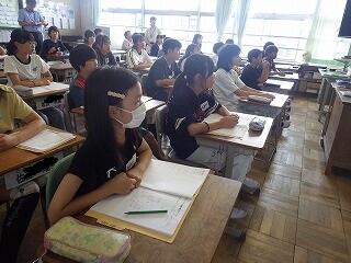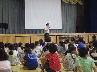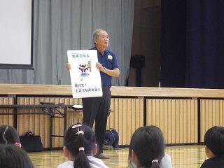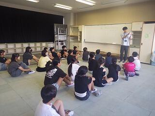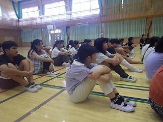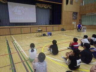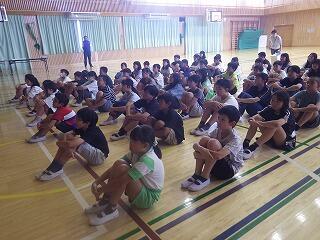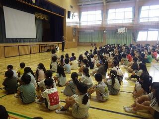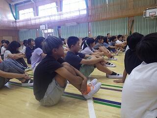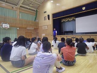 最後は、全学年が体育館に集合して、サポーターの講話をうかがいました。