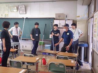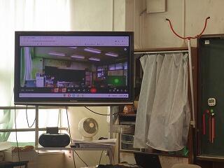 訓練の一環として、1年生教室で起きていることを、モニターで確認しながら待機しました。