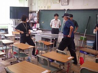 この際、スクールサポーターの方から、さすまたの使い方や避難の仕方などについて、レクチャーを受けました。