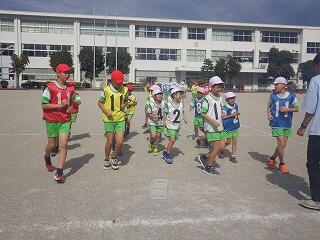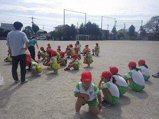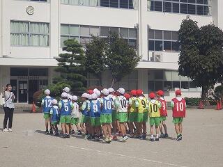 今日の朝の時間、宇都宮市陸上競技大会の選手候補の児童がふれあい広場に集まりました。