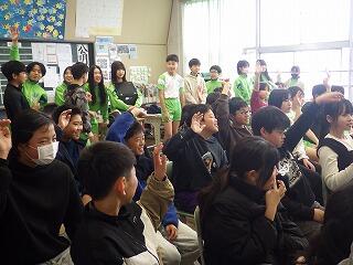 5年生は、楽しくクイズに答えたり、興味津々で身を乗り出して話を聞いたりしていました。