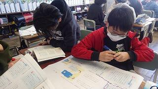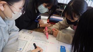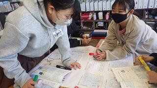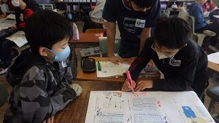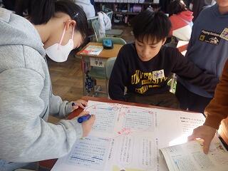 6年生の国語、新聞記事やテレビ、SNSの投稿などの情報の信頼性を検討して、意見文を書く学習を行っています。