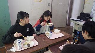 今日は、ご当地メニュー北海道・東北編として、豚丼(北海道)、芋の子汁(岩手)、ラフランスゼリー(山形)が提供されました。