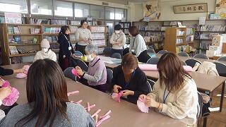 また、本日図書室では、掲示ボランティアの方々が、卒業祝いの飾りを作り始めてくださいました。