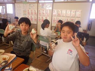今日の給食は、「おにぎり」持参でした。
