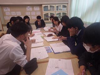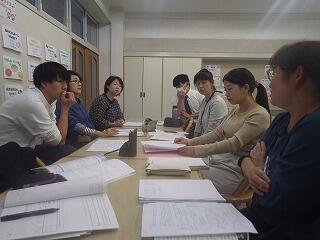 放課後の研修会では、授業を振り返り、改善点などについて全教員で話合いをしました。