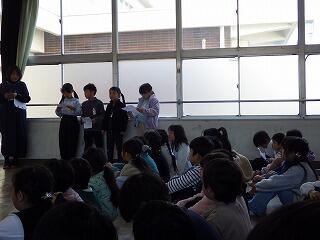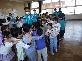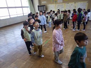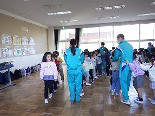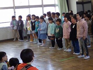 最後に、保育園生から「ちきゅうのうた」のプレゼントがあり、1年生からも「校歌」でお返しのプレゼントをしました。