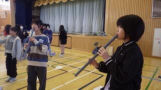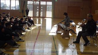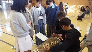 今日は、ふれあい文化教室で「坂本玉宏会」の皆様が来校し、6年生が琴と尺八の体験をしました。