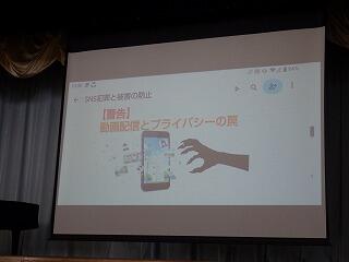 SNSでのトラブルを防ぐために大切なことを、スライドや動画を交えて、分かりやすく教えていただきました。
