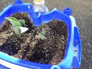 「球根を2つしか植えてないのに、3つも芽が出てる!」
