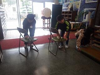 ただ、本日夕方より雨が降りそうなので、昨日のうちに、6年生が机や椅子の運び出しをしてくれました。