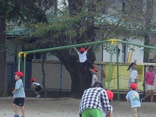 暑さが落ち着いた穏やかな本日、校庭では、自由遊びやクラス遊びでの歓声が挙がっていました。