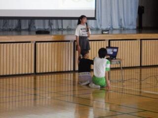 体育館では、運営委員会の児童が、明日の「いじめゼロ集会」のリハーサルを行っていました。