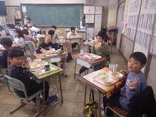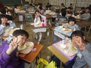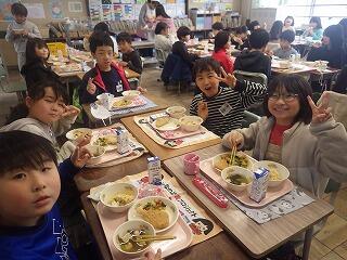 給食は、五目ちらし寿司やすまし汁、桜餅などの「ひなまつり献立」でした。