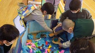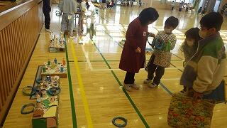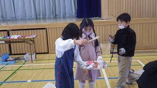 遊びが始まると、やり方を教えてあげたり、賞品を選ばせてあげたりと、1年生にとても優しく接する2年生。