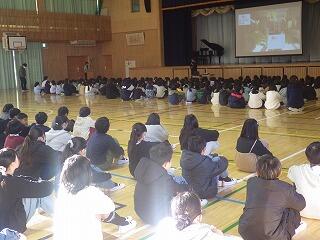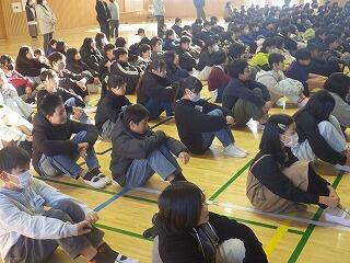朝会では、6年生代表児童が卒業に向けての抱負を述べたり、校長から「挑戦すること」について講話をしたりしました。