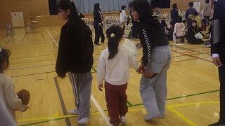 保護者の皆様が待つ体育館に戻ってきたときには、案内役の5年生とすっかり仲良しになったお子さんもいました。