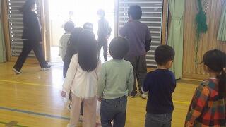 受付を済ませた幼児のみなさんは、5年生の誘導で列に並び、