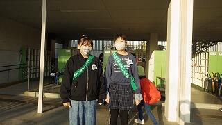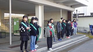 運営委員、代表委員に加えて、3年以上の有志「あいさつ隊」が朝のあいさつをリードしています。