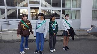 あいさつを通して、「自分たちのよりよい学校を 自分たちでつくる」ために頑張ってます。