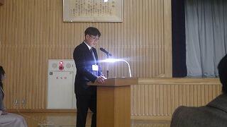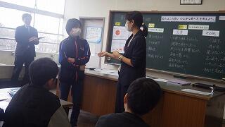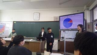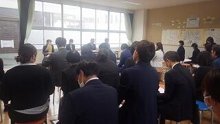 授業後の全体会では、本校の研究内容について、研究主任よりプレゼンを行いました。