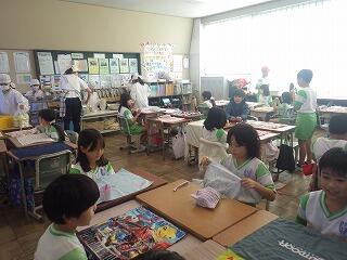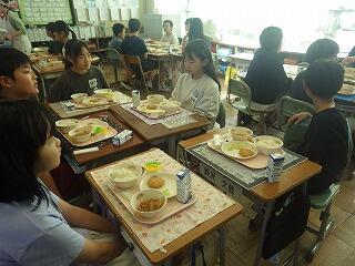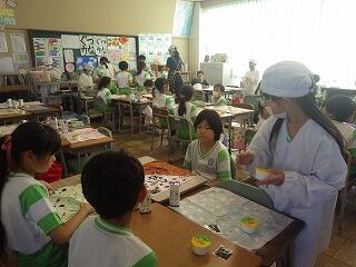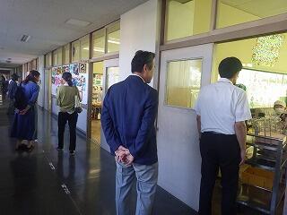 給食試食の前に、子供たちの配膳の様子を参観していただきました。