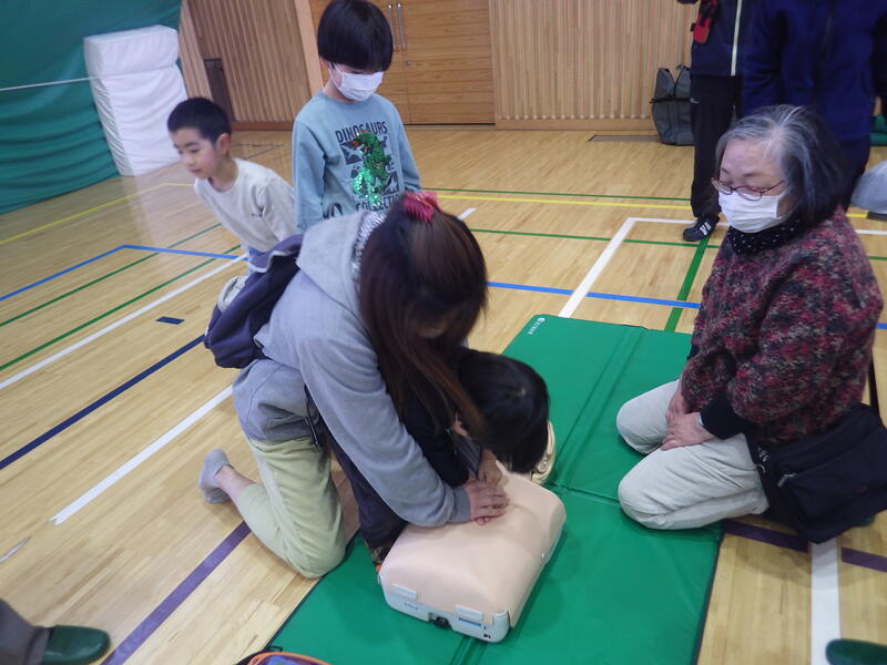 AEDの扱い、初期消火、排煙など、様々な訓練コーナーが設置されました。