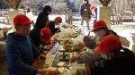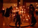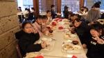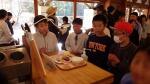 「杉板焼き」と自然に親しむ「ネイチャーゲーム」、「キャンドルファイヤー」、食事の様子