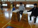 まずは、2月25日に行った運動に親しむ機会「峰小版サスケ!」をご紹介します。委員会の子供たちが学校にある器具を使い、サスケの場を作りました。この日は、高学年対象のチャレンジでした。先生方も、挑戦していましたよ。