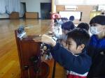 続いて、3年生の社会科で昔の道具を使う体験をしました。ご紹介くださったのは、県立博物館の方々です。みな、見たことのない道具に興味津々です。校長としては、子供のころに愛用していたウォークマンや黒電話など・・・もう、昔の道具になってしまうのかと・・・違う意味で感慨深い学びでした。