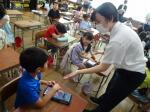 1年生は、「10より大きい数」の学習で、大量のおにぎりをどう数えたらよいかを考えました。4年生は、「折れ線グラフ」の学習で、折れ線グラフの特徴とその用い方を考えました。