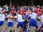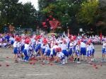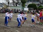 心配された雨も明け方には上がり、教職員と「おやじの会」の皆様のお力添えをいただきながら雨水の処理を行い、何とか通常の時刻通り運動会を実施することができました。