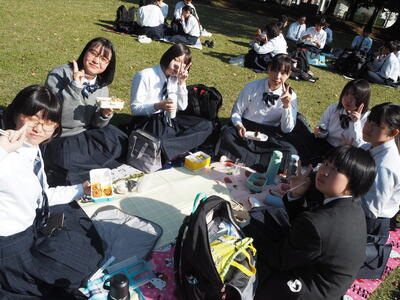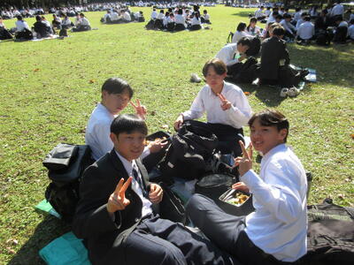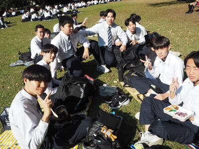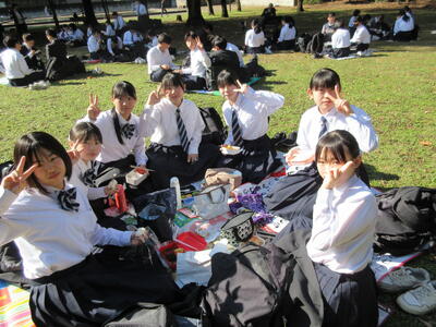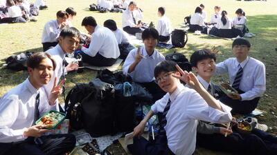 文化祭当日は「お弁当の日」で、お昼には外でお弁当を食べました。