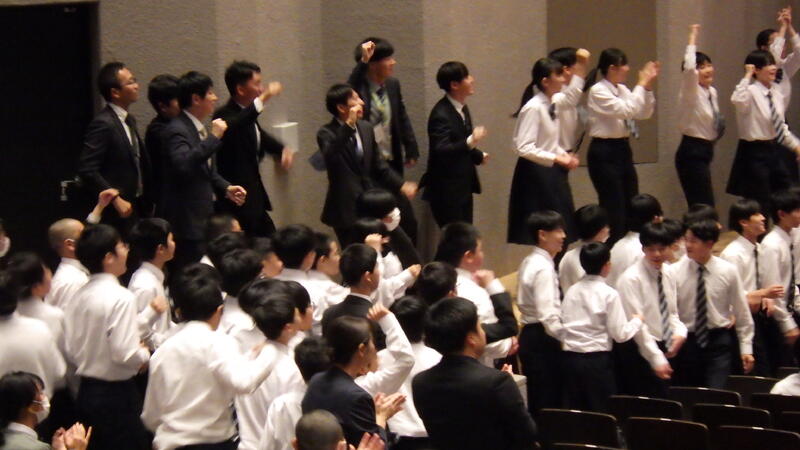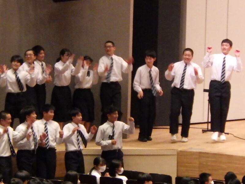 吹奏楽部の演奏に合わせて、3年生の先生方が熱唱しました!