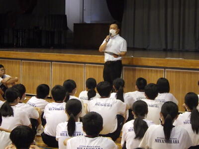 緊張しながらも、生徒代表として立派に受け答えして、宮中の文化祭(合唱コンクール)を紹介してくれました。