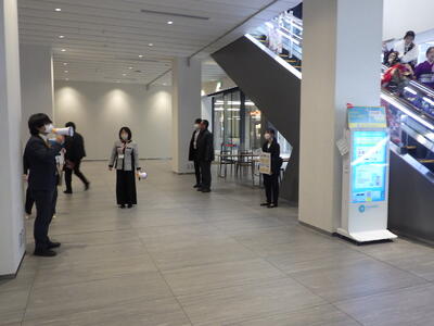 今日は、「クリスマスバージョンのあいさつ運動です」とのこと。